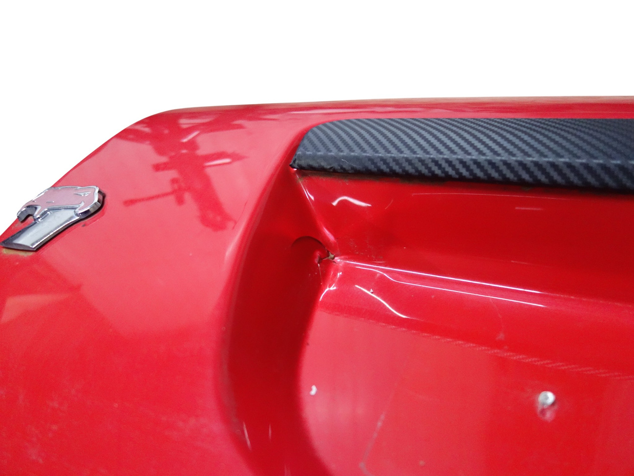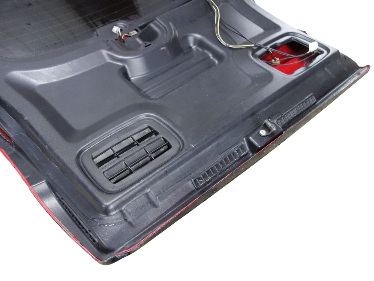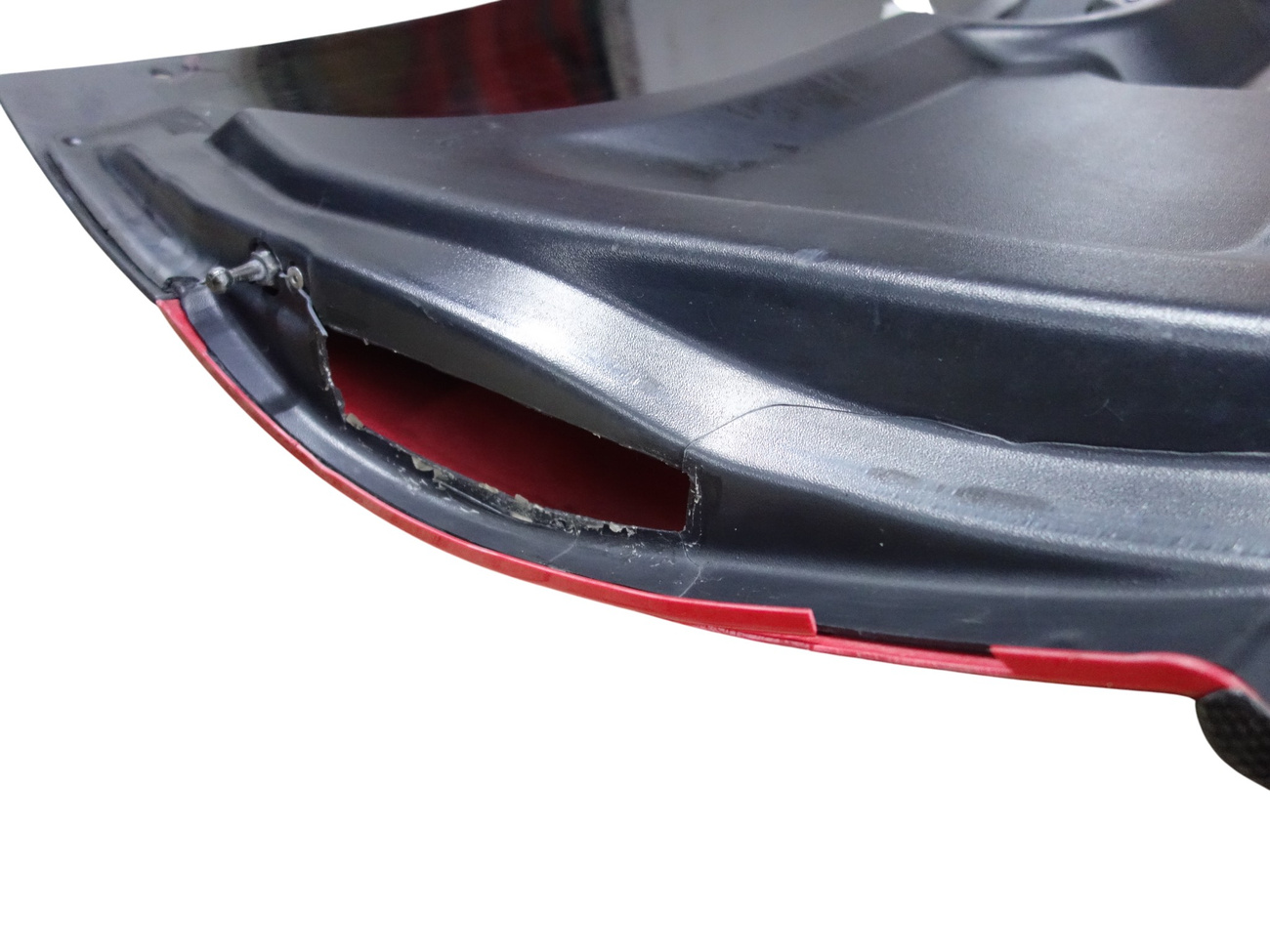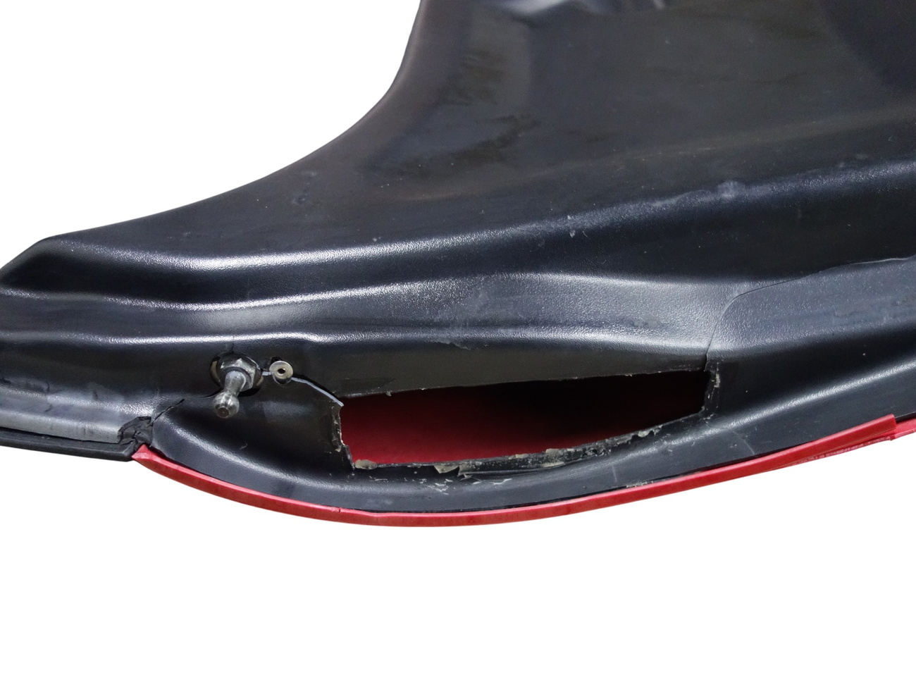 Damaged upholstery (LOSS). Crack in the recess by the license plate - as in the PHOTO.